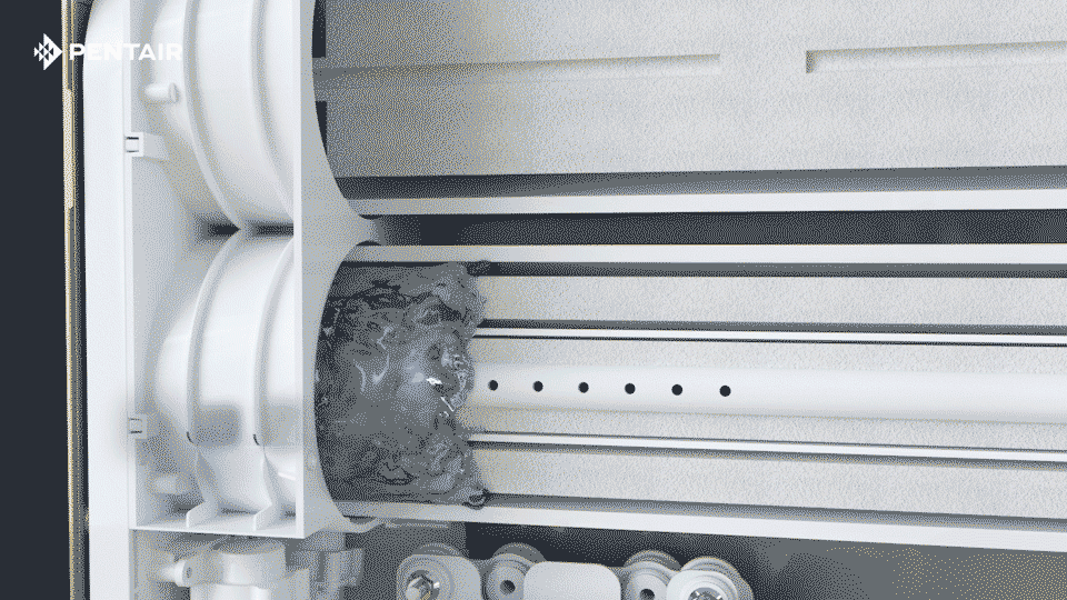 龍頭關閉后,子RO膜啟動,提供純水沖洗主RO濾芯膜前陳水。