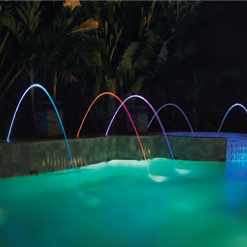 MagicStream 弧光泉與 IntelliBrite 5g LED 彩色和白色 燈完全同步,使從池岸或周圍景觀噴射而出的水流形成一 道晶瑩剔透、均勻劃一的弧線。在夜晚,這些半明半暗的 水流光彩奪目,為您的泳池景觀增添一絲優(yōu)雅的浪漫氣 息。完全兼容 IntelliBrite 5g 系列 LED 泳池?zé)?、選配的 IntelliBrite 控制器及 EasyTouch 或 IntelliTouch 自動 化系統(tǒng)。用戶可使用室內(nèi)控制面板、無線遙控器和安裝 在 iPhone、iPad 和 iPod touch 數(shù)字移動設(shè)備、Android 設(shè)備、PC 或 Mac 電腦上的 ScreenLogic 界面來自定義 程序和控制光影秀。
