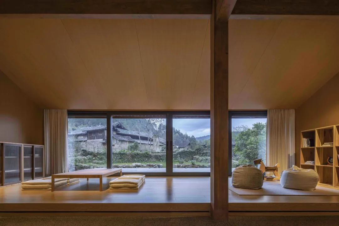 徐岙底鄉(xiāng)舍民宿遵循古村原始風(fēng)貌,保留木結(jié)構(gòu)、夯土墻面和瓦屋面,室內(nèi)多為柔和的土色,空間上確保與自然的流通。在設(shè)計上則聘請了專業(yè)設(shè)計師團(tuán)隊依照現(xiàn)代生活的需要進(jìn)行改造,以鄉(xiāng)舍為載體,邀請人們回到鄉(xiāng)村。